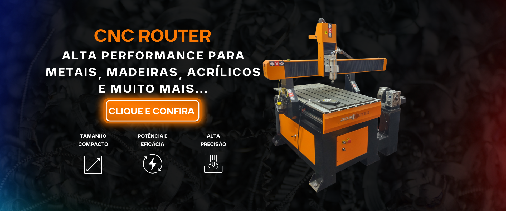 A CNC Router oferece precisão e versatilidade para cortes e gravações em madeira, acrílico, MDF, PVC, ABS, Alumínio, Aço, Cobre e outros materiais. Produção personalizada com alta eficiência.