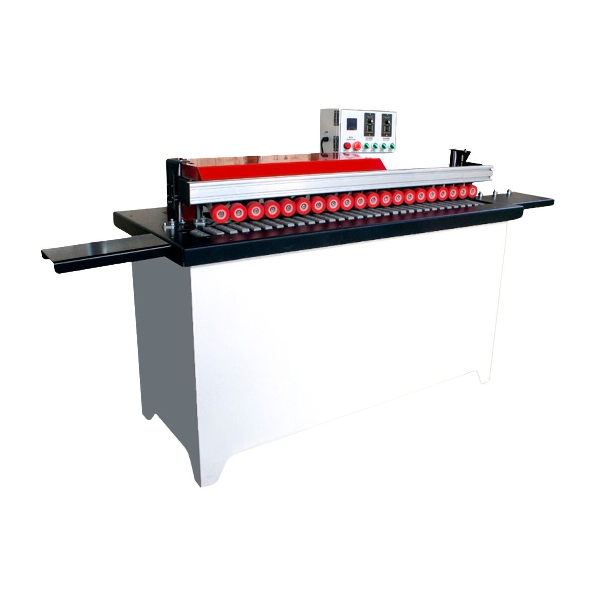 A automação proporciona uma produção mais rápida e eficiente. Esta coladeira automática pode aplicar a fita de borda de forma contínua e consistente, aumentando significativamente a produtividade em comparação com processos manuais.